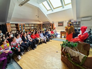 За поредна година, в навечерието на коледните и новогодишни празници, от 5 до 19 декември 2025г. вкл., Регионална библиотека „Сава Доброплодни”- Сливен предложи на своите малки и по-големи читатели и на сливенското гражданство богата празнична програма. В програмата на тържествата „Коледа в библиотеката“-2025 бяха включени: срещи при Коледното дърво на желанията, представления за деца, изложба коледни картички от конкурса „Коледна магия” - 2025, церемония за награждаване на отличените участници в конкурса за коледна картичка и оригинално коледно пожелание, коледен концерт. Интересен акцент в програмата е и изложбата -илюстрации „Коледа през погледа на утвърдени български майстори на илюстрацията“. От 4 до 19 декември 2025г. мечтите и желанията на над 1200 сливенски деца и юноши събра Коледното дърво на желанията в библиотеката. И тази година на огромна елха във фоайето на библиотеката деца и юноши окачиха своите желания за следващата година. Предстои желанията да бъдат обобщени и веднага след коледните празници ще бъдат обявени. Така, ние възрастните, ще можем да узнаем съкровените желания на децата и да помогнем те да се изпълнят. От 9 до 18 декември 2025г., по традиция в библиотеката отвори врати приказен театър. Представленията привлякоха рекорден брой зрители. Над 1500 деца на възраст 7 - 9г. /I - III клас/, от различни сливенски училища /НУ “Васил Левски“, ОУ “Христо Ботев“, ОУ “Д-р Иван Селимински“, СУ “Пейо К. Яворов“, ОУ “Панайот Хитов“, ОУ “Св.св.Кирил и Методий“, СУ “Йордан Йовков“, СУ “Константин Константинов“, ОУ “Елисавета Багряна“/ по график проследиха представлението „Как да получиш най-големия коледен подарък?” – весела история за коледните премеждия на талантливия и добросърдечен Зайо, в опит да спаси своето стихотворение от лошия Вълчо и хитрата Лисана и да получи от Дядо Коледа най-големия коледен подарък. Постановката беше реализирана от театрална група на служители от библиотеката с подкрепата на актьора Ангел Попов от ДКТ-Ямбол. На 18 декември 2025г. в централното фоайе на библиотеката беше открита изложба-илюстрации „Коледа през погледа на утвърдени български майстори на илюстрацията“. На 12 пана са представени илюстрации на художниците Борис Стоилов, Петър Станимиров, Ралица Мануилова и Елена Жаблянова, носители на Националната награда „Константин Константинов“ в категория „Илюстратор“ в различни издания на Националния фестивал на детската книга, който се организира ежегодно от сливенската регионална библиотека вече 27 години. Интересен акцент в изложбата са представените в шест витрини книги от 20-те години на миналия век до наши дни с илюстрации за Коледа на най-известните български художници. На 18 декември 2025г., от 11:00ч., на официална церемония бяха наградени отличените участници в конкурса за коледна картичка и оригинално коледно пожелание „Коледна магия“ - 2025. Церемонията завърши с концерт, в който със свои изпълнения се включиха млади сливенски изпълнители и детска коледарска група от ОУ “Елисавета Багряна“. Конкурсът за коледна картичка и оригинално коледно пожелание се организира от РБ ”Сава Доброплодни” за седемнадесета поредна година, за да поощри децата и тийнейджърите да пресъздадат коледната магия - светла, красива и съзидателна. В него тази година се включиха над 1000 деца и тийнейджъри, на въ