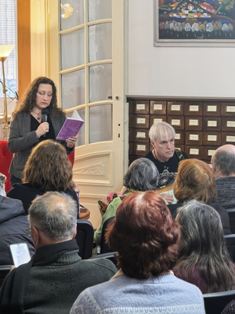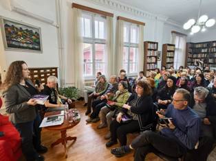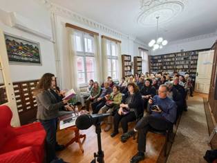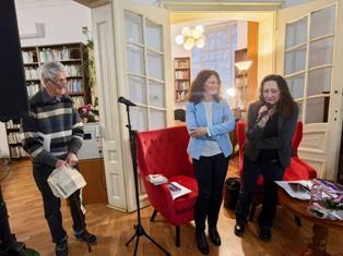 ПРЕМИЕРА НА КНИГАТА „СЛУЧАЙНИ ДУМИ ОТ РЕЧНИКА: ОПИТОМЯВАНЕ НА ХАОСА“ НА ПОЕТЕСАТА ИВЕТА ДАНАИЛОВА СЕ СЪСТОЯ В РБ „САВА ДОБРОПЛОДНИ“ – СЛИВЕН На 20 март 2026г., в навечерието на Световния ден на поезията, в РБ „Сава Доброплодни“ се състоя премиерата на новата стихосбирка на родената в Сливен поетеса Ивета Данаилова. „Случайни думи от речника: опитомяване на хаоса“. Гости на премиерата бяха сливенски поети и писатели, съученици на поетесата, нейни родственици и почитатели на творчеството й. „Случайни думи от речника: опитомяване на хаоса” е издадена от ИК „Потайниче“ през 2025г. По думите на поетесата тя е „различна“ книга, която е писала в продължение на седем години. Книгата е разделена в два цикъла - „Случайни думи от речника“ и „Опитомяване на хаоса“, с общо 52 стихотворения. Поетесата конструира първия цикъл като „научен“, а втория като поетичен. Седмата стихосбирка на Ивета Данаилова съчетава филологически и философски подход към човека и света. Читателите познават нейното меланхолично вглеждане в отминаващото време, на което тя дава думи и памет. Съзерцателният ѝ поетически аз регистрира прозрения, колебания или просто тишина, като им придава непатетичност. Книгата бе представена от поетесата Виолета Калайджиева. За ранната поезия на Ивета Данаилова говориха поетът Деньо Денев и нейната учителка Соня Келеведжиева. С вълнение поетесата отговори и за мястото на Евгения Генова за изграждането й като творец. Продължилата близо два часа среща завърши с раздаване на автографи и много снимки за спомен от литературното събитие. |