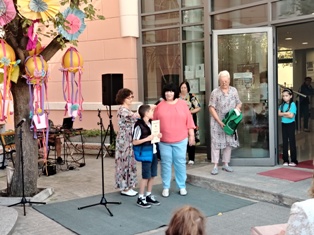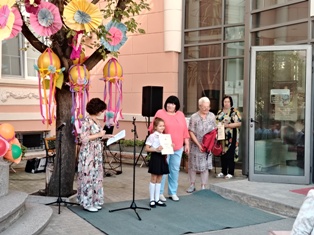 На 25 септември /четвъртък/, от 10:30ч., в двора на РБ “Сава Доброплодни“-Сливен се проведе очаквано от много сливенски деца събитие - церемонията за награждаване на най-активните читатели на Детския отдел, прочели най-много книги през лятната ваканция. По традиция бяха отличени и сливенските училища с най-много регистрирани като читатели в библиотеката техни възпитаници. С цел поощряване на детското четене през летните ваканционни дни и тази година Детският отдел на библиотеката покани децата от всички сливенски училища, на възраст от 7 до 14г., да се включат в надпреварата за най-активен читател. Много деца приеха поканата като истинско предизвикателство като регистрираните нови читатели на Детския отдел ставаха все повече, а най-верните му почитатели го посещаваха все по-често и заемаха по-голям брой книги за дома. За всички тях пътешествието в необятния свят на книгите на български и чужди автори, останали извън „досадните и задължителни” училищни списъци за лятно четене, се превърна в едно от най-вълнуващите преживявания през лятната ваканция. Резултатите от инициативата са много радващи. Към 15 септември 2025г. регистрираните читатели в Детския отдел на библиотеката вече са над 2000 като през летните месеци посещенията на децата и заетите книги са се повишили почти двойно. На церемонията бяха наградени най-активните малки читатели - 9 ученици от различни сливенски училища, прочели най-много книги през лятната ваканция: Радина Добромирова Иванова – на 8г. от ОУ „Д-р Иван Селимински” /60 книги/; Александра Георгиева Панайотова - 9г. от ОУ „Д-р Иван Селимински” /38 книги/; Беатрис Янкова Минкова - 12г. от ОУ ”Хр.Ботев” /33 книги/; Илиян Петров Добриянов – 11г. от ППМГ ”Д.Чинтулов” /32 книги/; Георги Стоянов Терзиев – 9 г. от СОУ ”К. Константинов” /31 книги/; Светозара Светославова Василева – 8 г. от ОУ ”Е.Багряна”/31 книги /; Ивайло Боянов Колев - 8г. от ОУ ”Димитър Петров” /30 книги/; Стефани Стефанова Йорданова – 12г. от СОУ ”П.К.Яворов” /30 книги/; Ванина Емилиянова Янкова – 10г. от НУ ”В.Левски” /30 книги/. Със специални грамоти и награди бяха отличени и училищата с най-много регистрирани читатели от началото на годината до 15 септември 2025г. /ОУ „Д-р Иван Селимински“ /293 читатели/, ОУ “Елисавета Багряна“ /248 читатели/, НУ “Васил Левски“/198 читатели/, ОУ “Д.Петров“ /194 читатели/, СУ “П.K.Яворов“ /194 читатели/, СУ “Константин Константинов“ /179 читатели/, ОУ “Христо Ботев“ /178 читатели/. Наградите бяха връчени от директора на регионалната библиотека, д-р Р.Петрова-Василева. Със специална награда и грамота бе отличена Величка Христова-дългогодишен директор на ОУ “Е.Багряна“ – за приноса й в реализиране проектите на библиотеката и по повод преминаването й в пенсия. Специален гост на тържеството бе обичаният от децата, всеизвестен ловец на приключения - барон Мюнхаузен, който забавлява публиката с разказ за невероятните си приключения. В образа на барона се въплъти актьорът Георги Янев. В церемонията се включиха и сладкогласните певци от вокална група „Славейче“ при ОУ „Христо Ботев“, с р-л Нина Стойчева и чаровните балерини от балет „Барби“ при Военен клуб - Сливен, с ръководител Силвия Терзиева, които поздравиха с изпълненията си най-четящите деца на Сливен и гостите на събитието, дариха ги с много настроение и усмивки. |